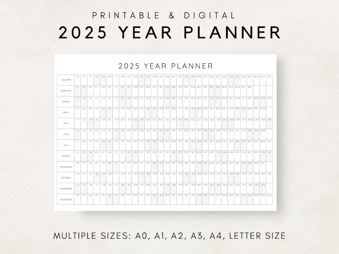 Buy 2025 Year Planner Printable Yearly Planning Calendar Calendar Poster 2025 Digital Calendar 2025 Calendar 2025 Planner Year At A Glance Online In India Etsy