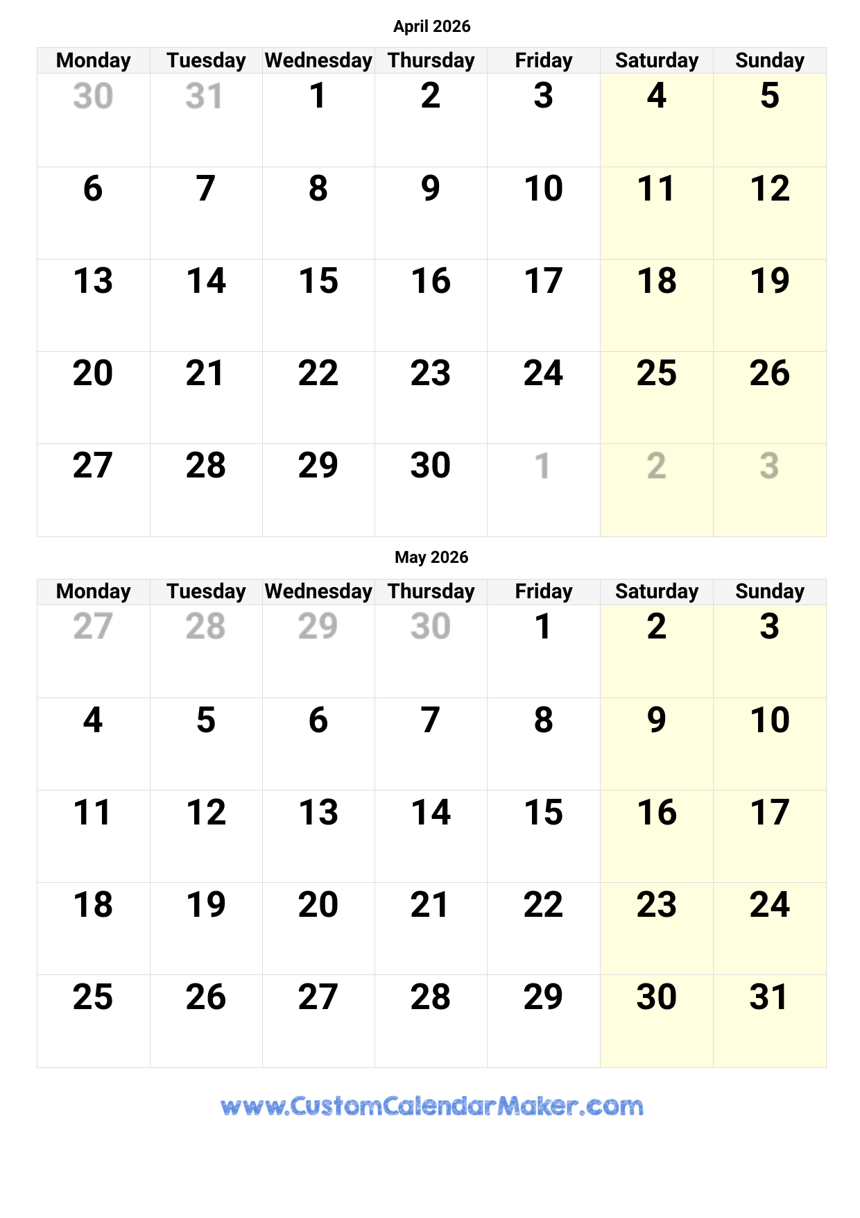May And June 2026 Calendar Printable PDF 2 Month Calendar Template