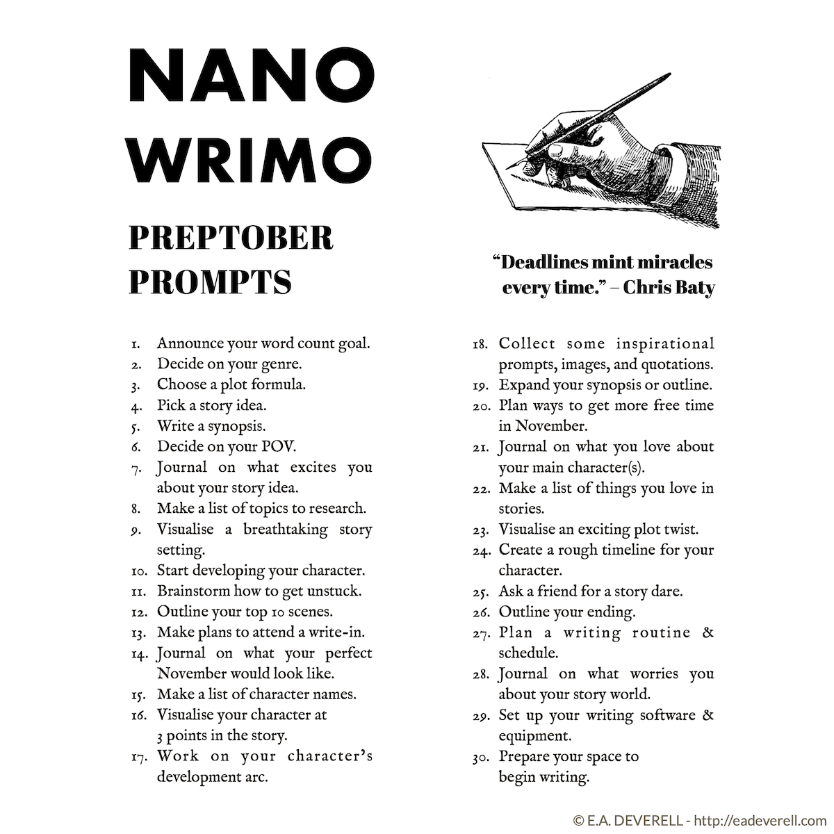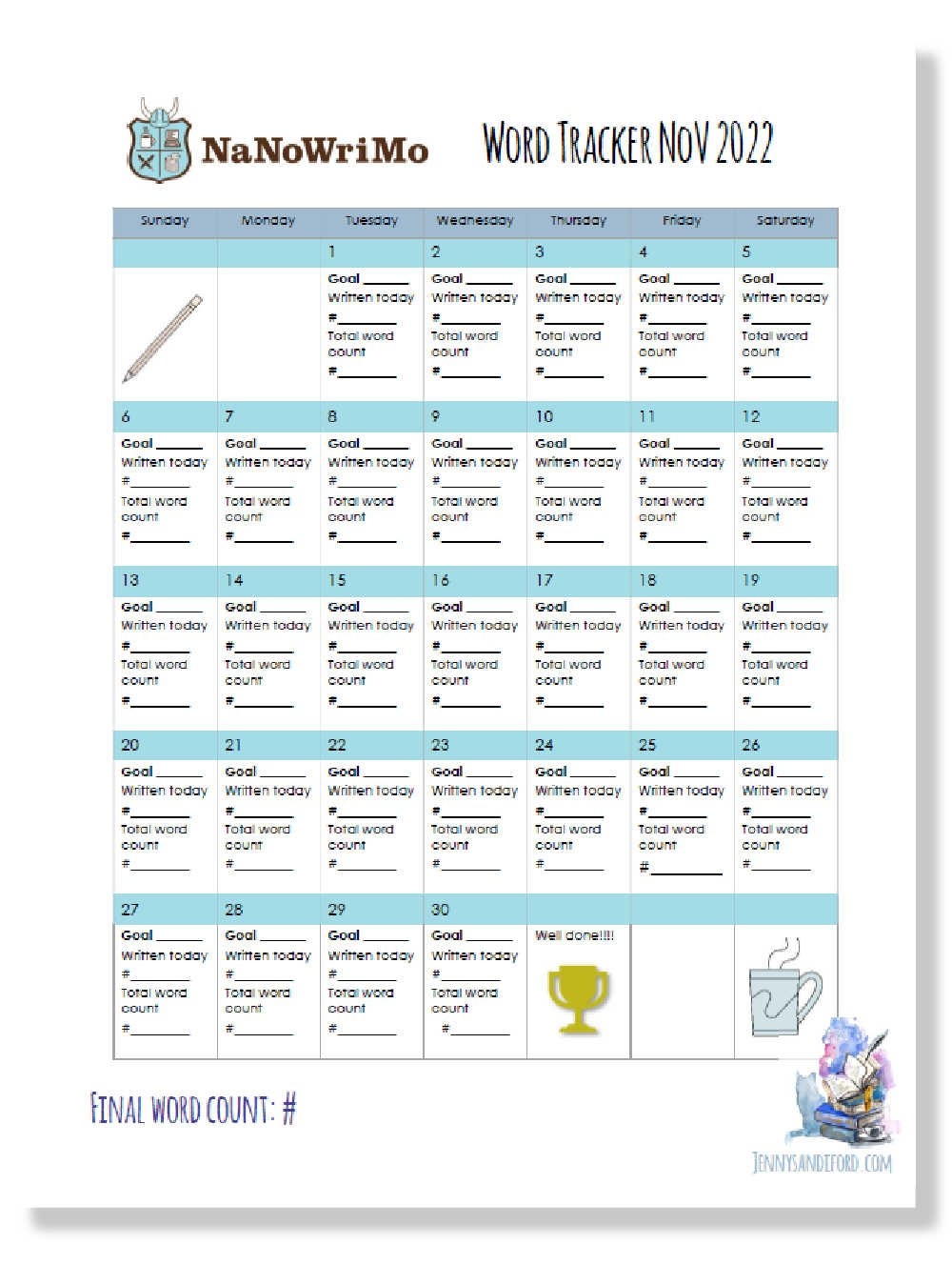 With this printable, you can map out your writing schedule, jot down your ideas, and keep track of your daily word count. It’s a handy tool to have by your side as you embark on this writing adventure. Simply download, print, and start writing!