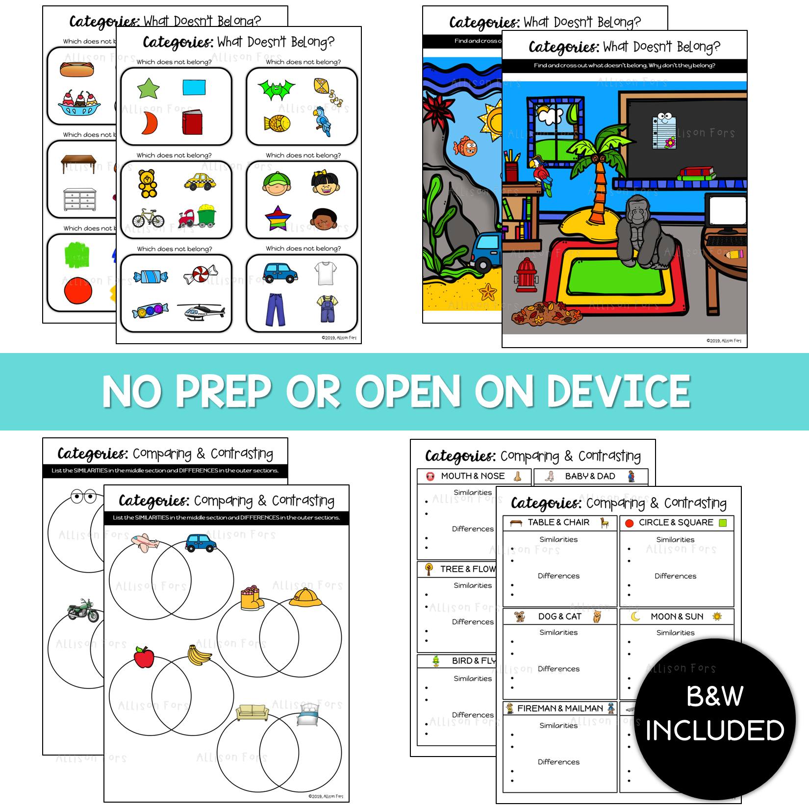 Categories Speech Therapy Activities NO PREP Basic Concepts Worksheets Allison Fors Inc
