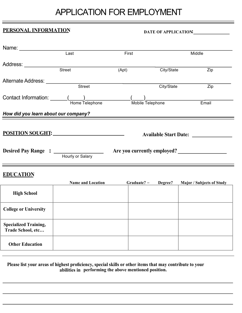 Don’t waste time searching for employment applications online or at local stores. Our Free Blank Printable Employment Application is free to download and print, saving you time and money. Take the first step towards your next career opportunity today!