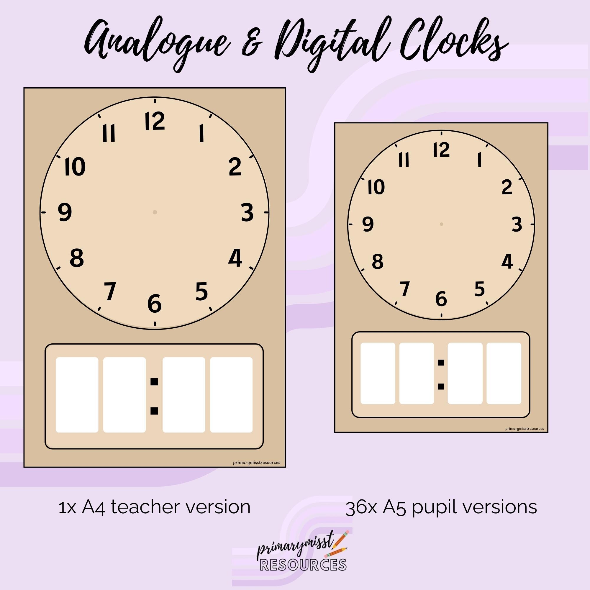 Analogue And Digital Clock Template Time Activities Maths Resources Primary Teacher Etsy