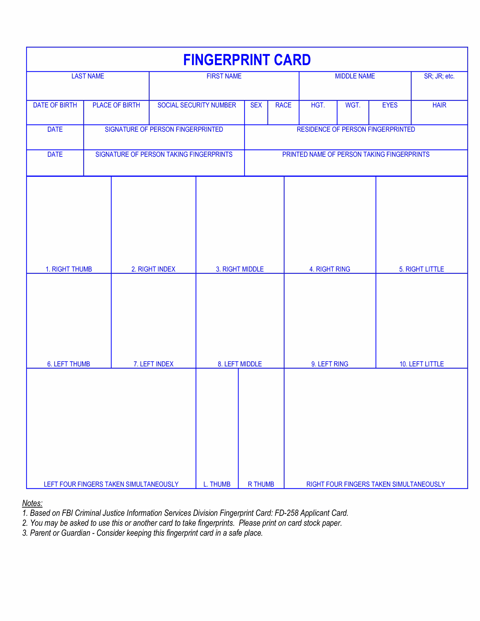 Blank Fingerprint Card Templates At Allbusinesstemplates