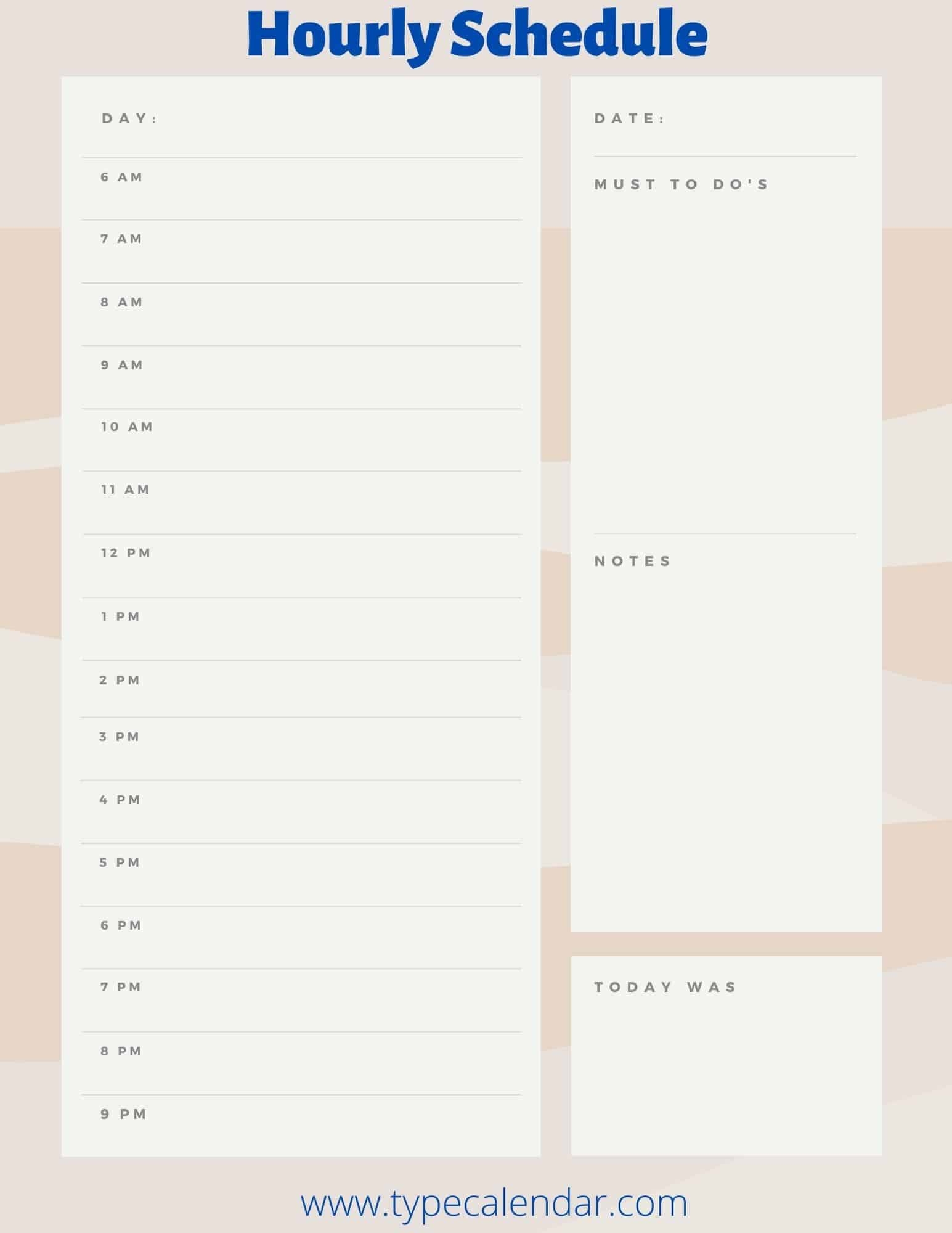With sections for each hour of the day, you can easily see where your time is going and make adjustments as needed. Whether you prefer to plan out your day in advance or simply jot down tasks as they come up, our blank hourly schedule can help you stay organized and productive.