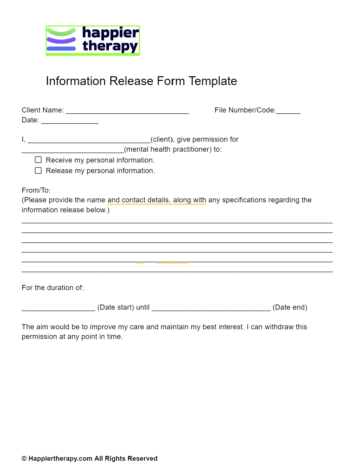 Information Release Form Template HappierTHERAPY