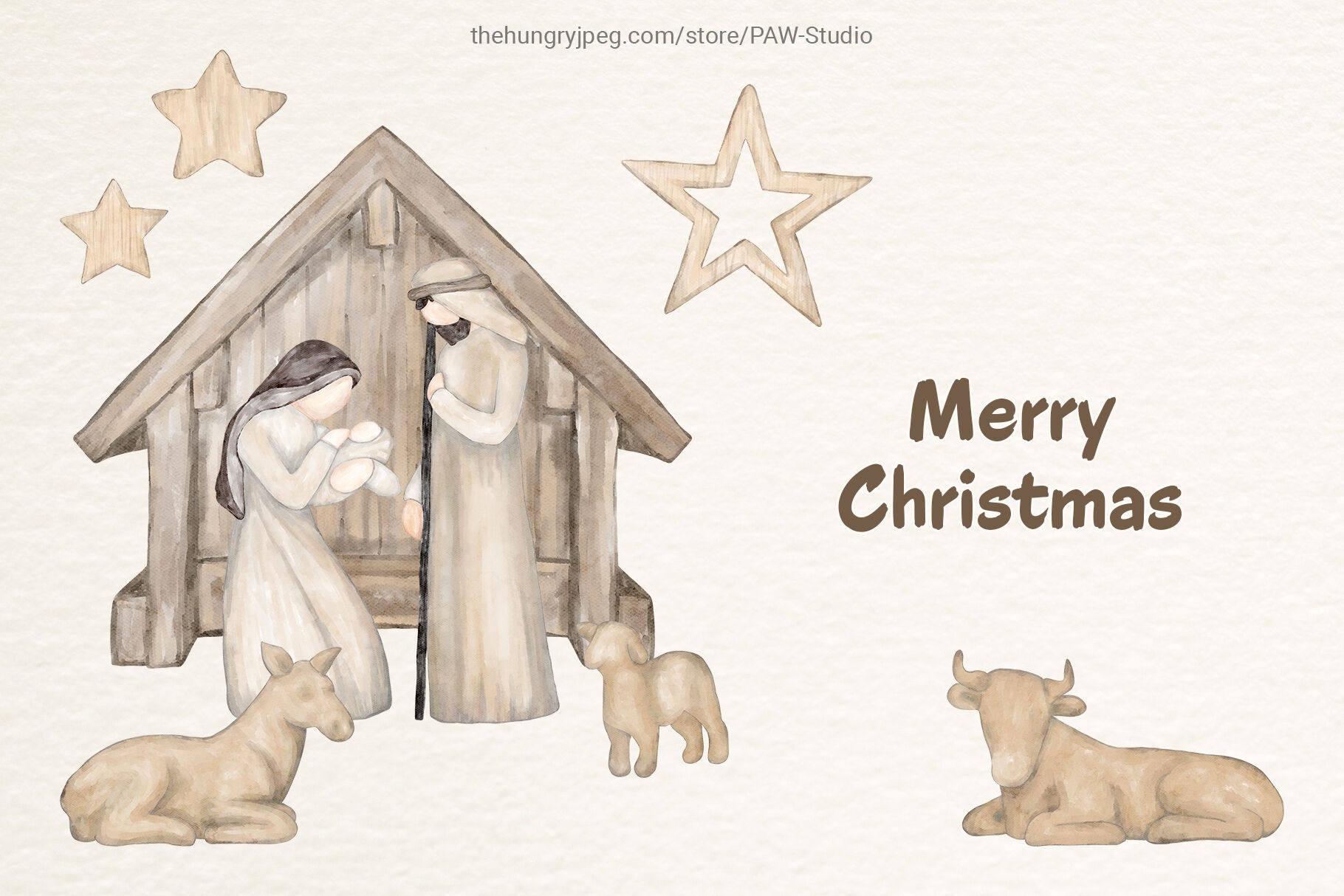 Religious Christmas Boho Clipart Nativity Watercolor Clipart By Paw Studio TheHungryJPEG