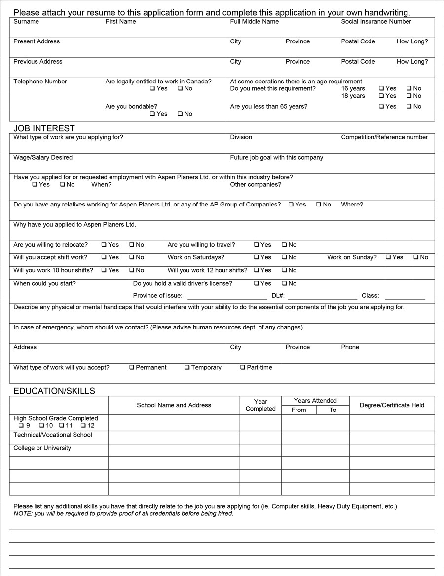 Simply download and print out the job application form that best suits your needs. Fill it out at your convenience and take it with you when you apply for your dream job. Our sample applications are designed to make the process as simple and straightforward as possible.