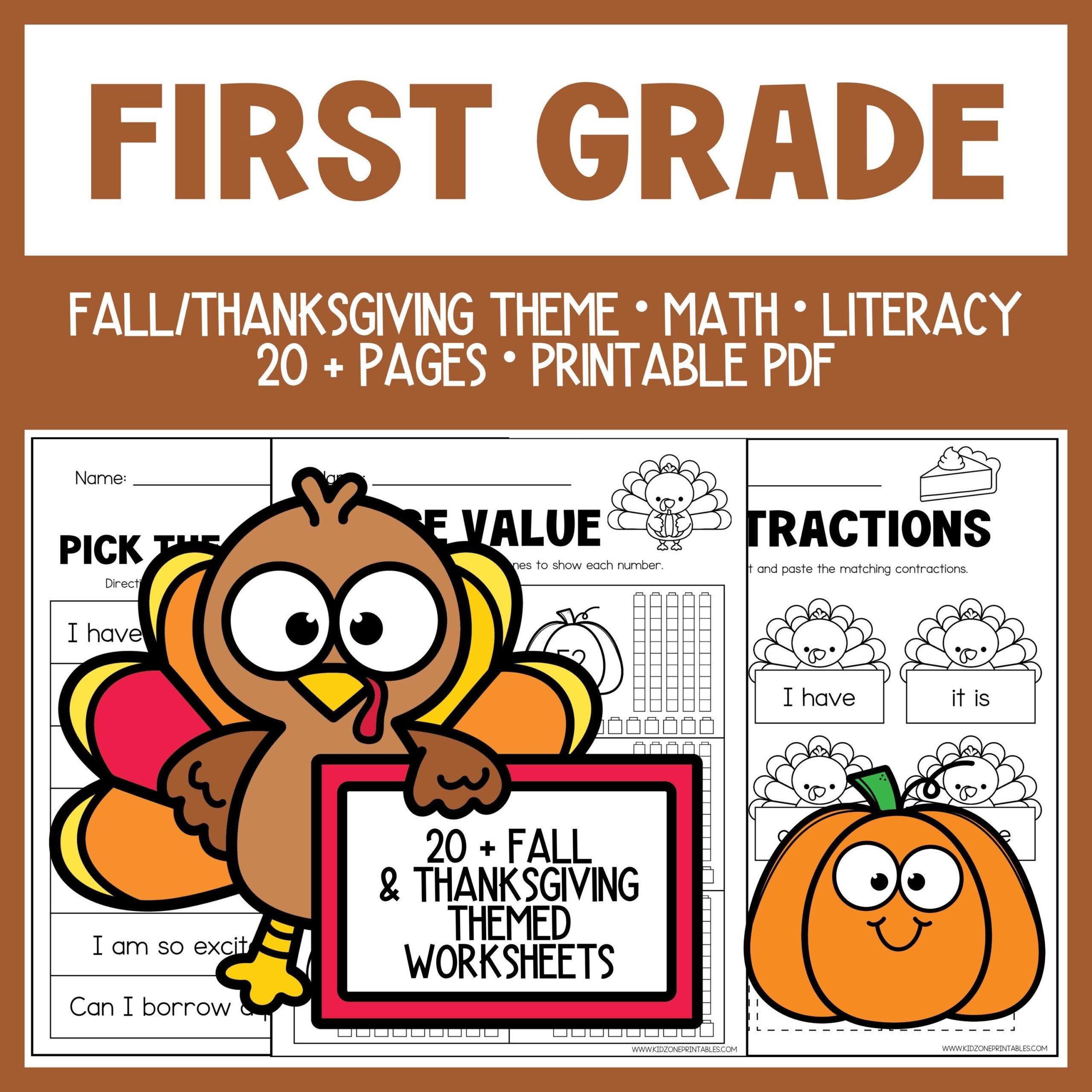 First Grade Worksheets Thanksgiving Theme Printable
