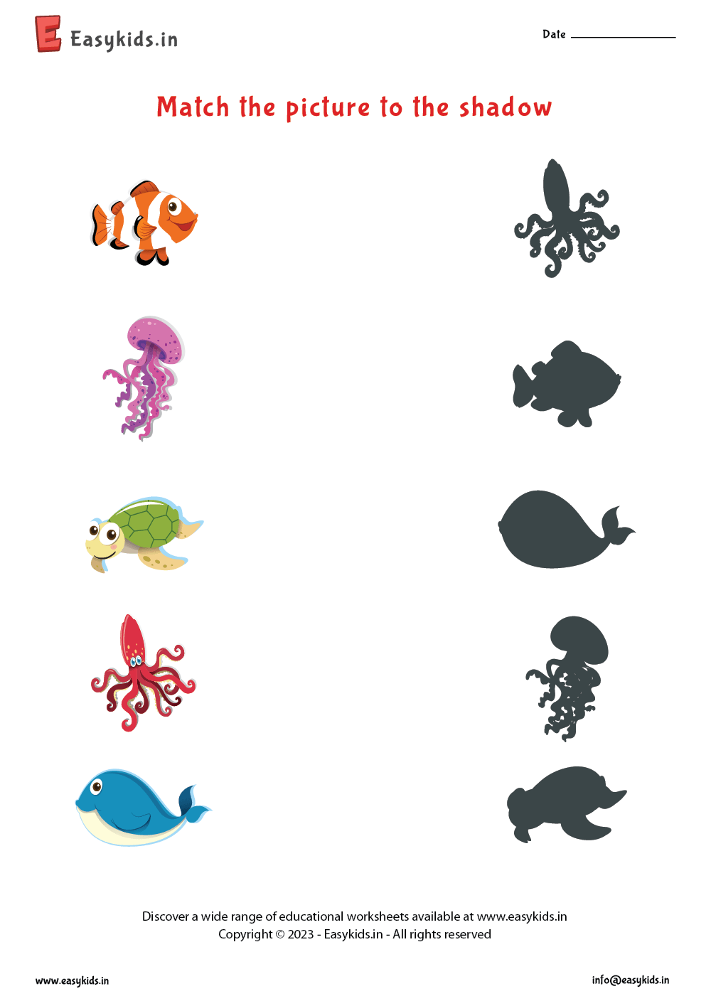 Match The Picture To The Shadow Worksheet