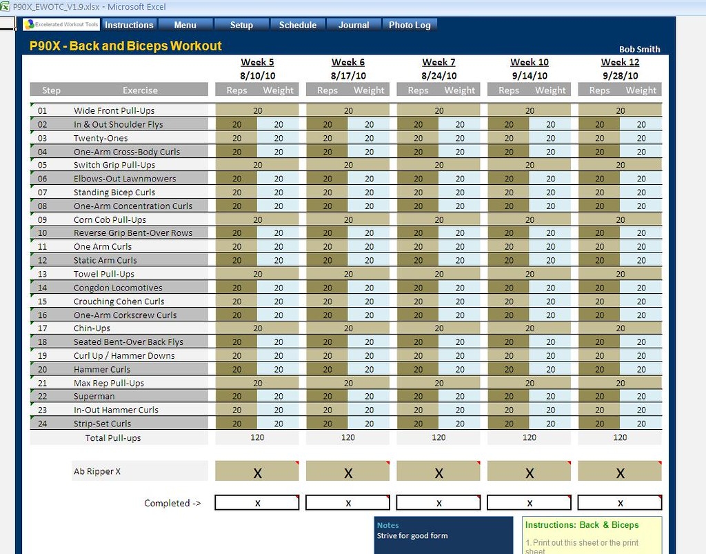 P90X Workout Sheets Free PDF Available For Download Print