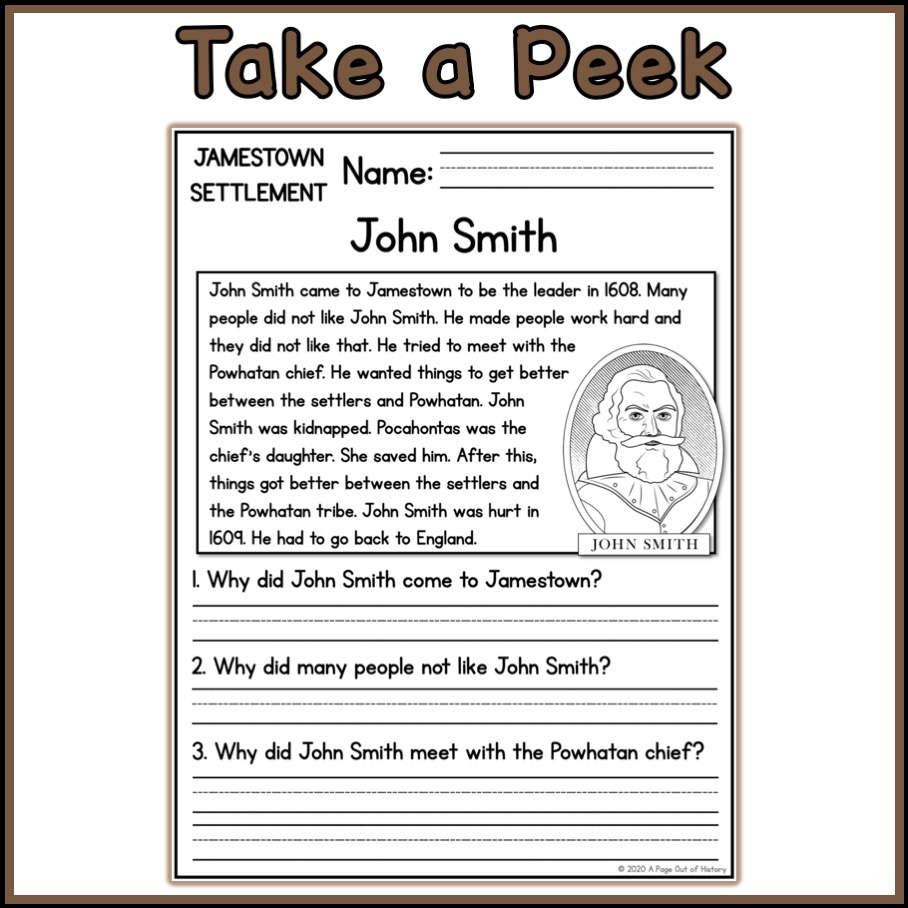 Jamestown Settlement Social Studies Reading Comprehension Passages K 2 Made By Teachers