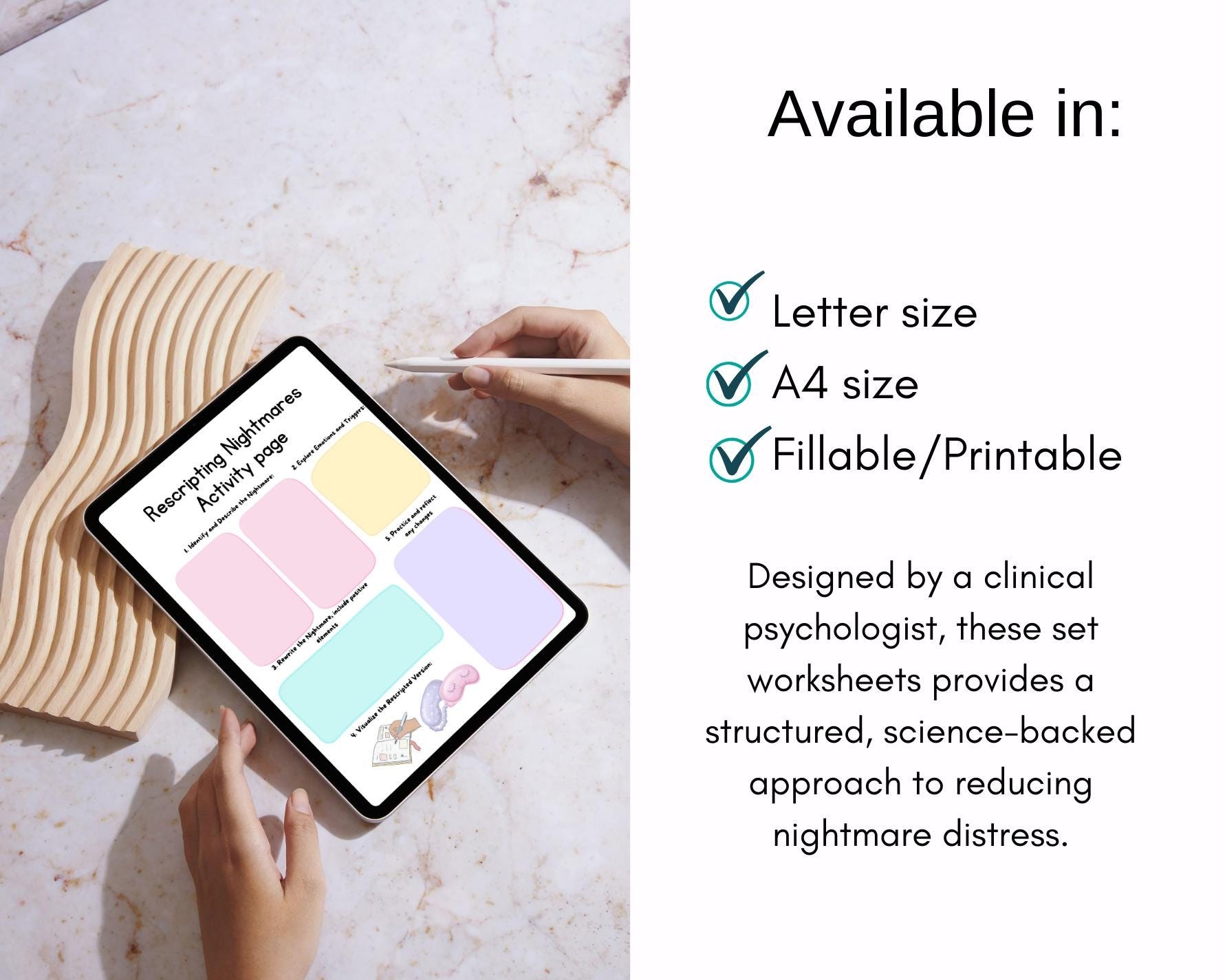 Nightmare Rescripting Worksheets Imagery Rehearsal Therapy Nightmare Journal Nightmare Rewind Nightmare Relief Cognitive Behavioral Therapy Etsy