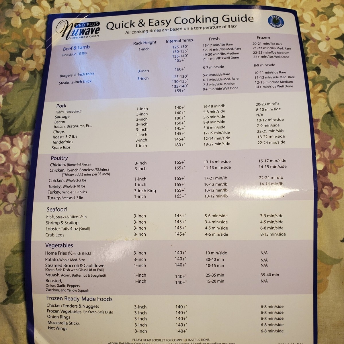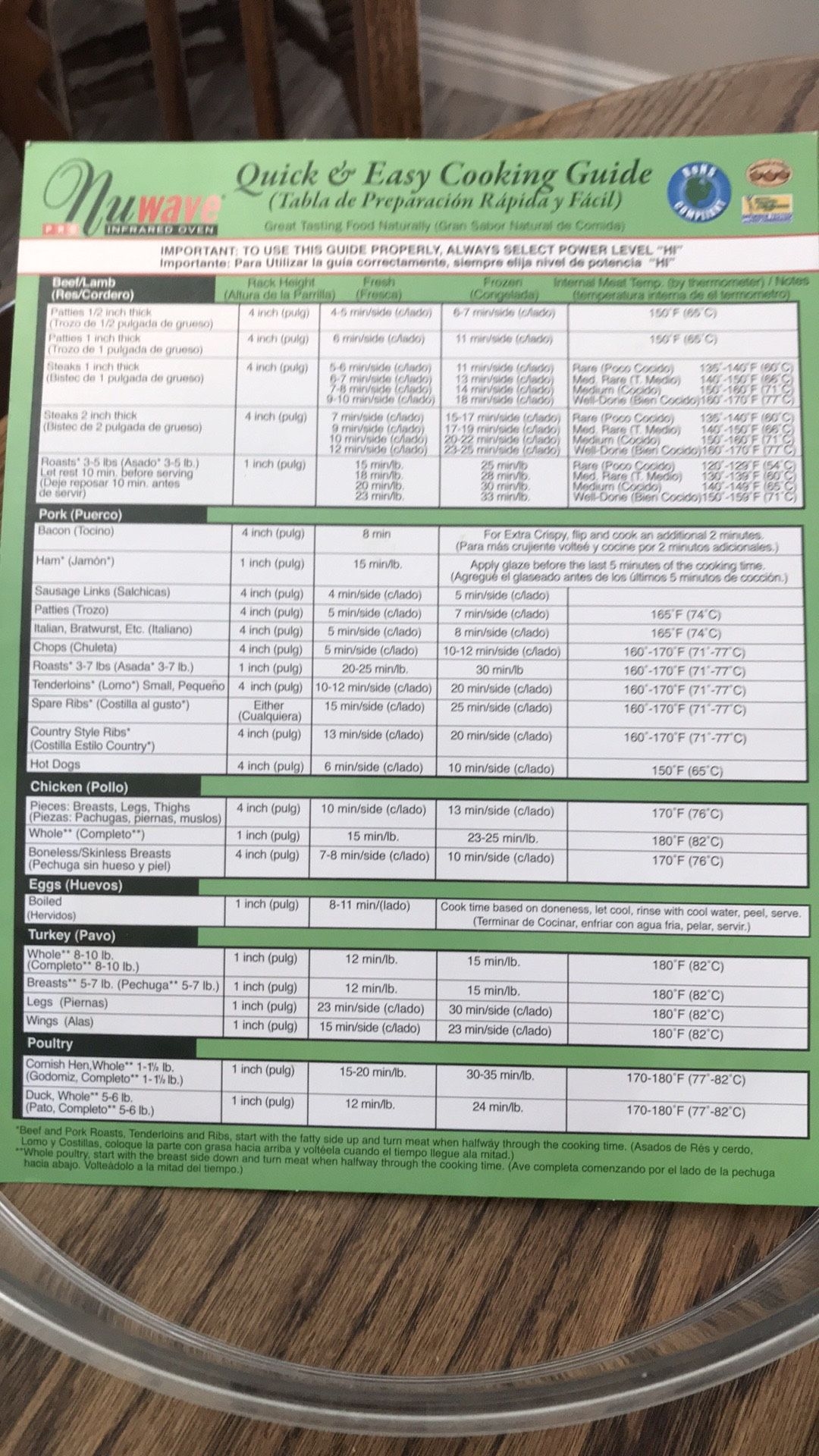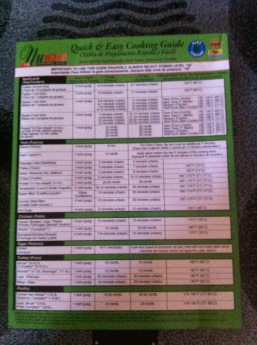 Printable Nuwave Oven Cooking Chart
