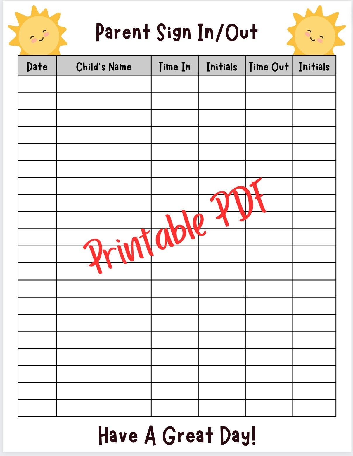 Daily Parent Sign In And Out Form Perfect For Daycare Preschool Sports VBS Camp Mother s Day Out Nursery School Cheerful Sun Theme Etsy Canada