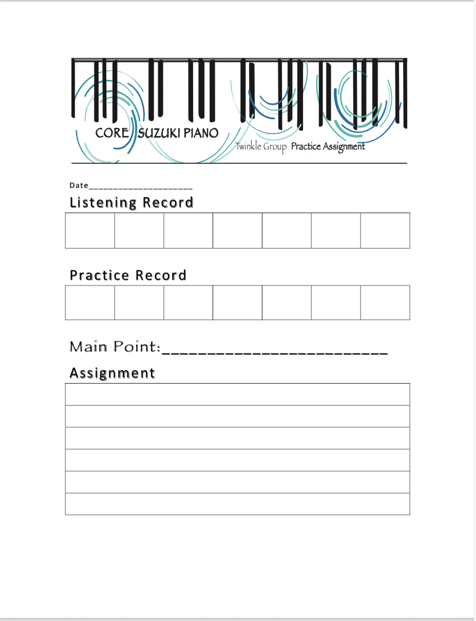 Practice Sheets Core Suzuki Piano