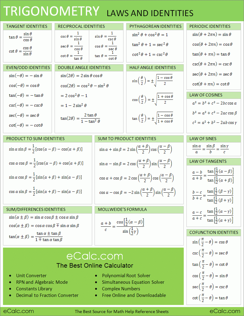 From sine and cosine to tangent and cotangent, this cheat sheet covers it all. Whether you need to find the value of an angle or solve a trigonometric equation, this resource has got you covered.