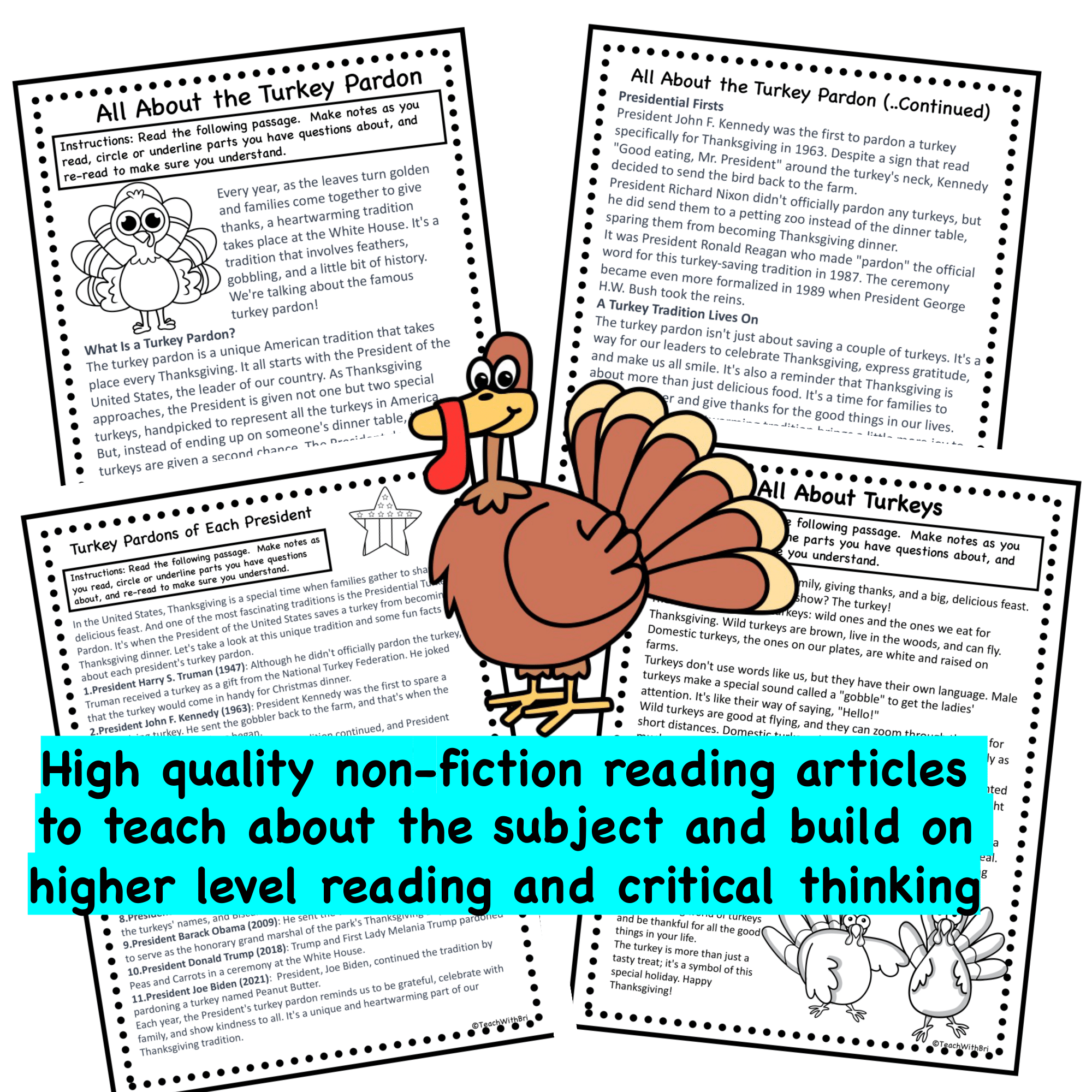 Turkey Pardon Reading Comprehension Worksheet Pack Classful