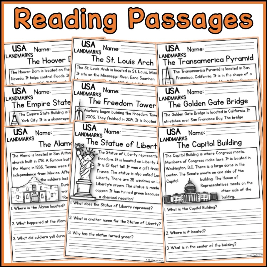 United States Landmarks Social Studies Reading Comprehension Passages K 2