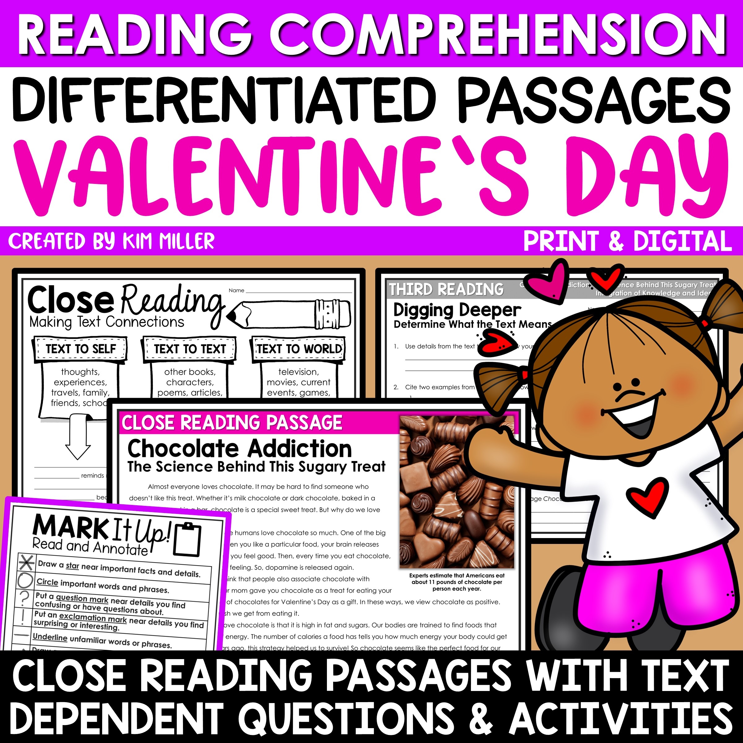 Valentine s Day Activities Reading Comprehension Passages Questions Close Reading A Love Of Teaching Kim Miller
