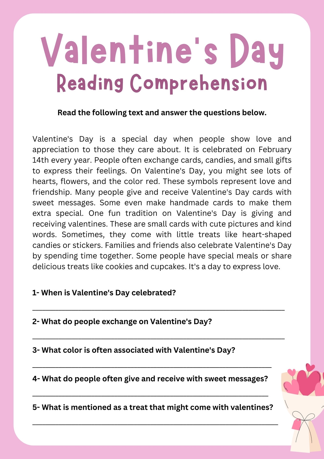Free Printable Valentine s Day Reading Comprehension Worksheet